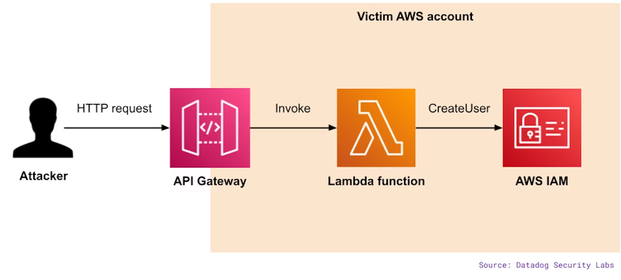 The Lambda function contains code that can dynamically create IAM users on demand, resulting in an unprecedented persistence capability. Even after the original compromised credentials are discovered and revoked, threat actors can maintain access by sending external HTTP requests to the API Gateway endpoint. These requests automatically trigger the Lambda function to create new malicious IAM users.