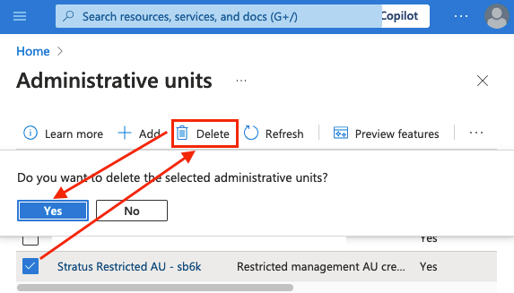 - Azure user removed from restricted administrative unit
