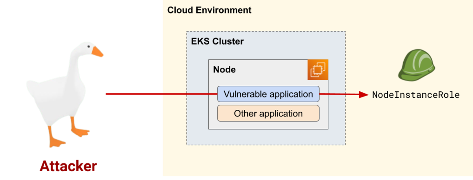 In the previous section, we detailed how IRSA allows us to assign a cloud identity to our Kubernetes workloads. This lets us "bridge the gap" between the cluster and the cloud. However, this design also creates pivot points that allow an attacker to move laterally from a compromised workload to our cloud environment.