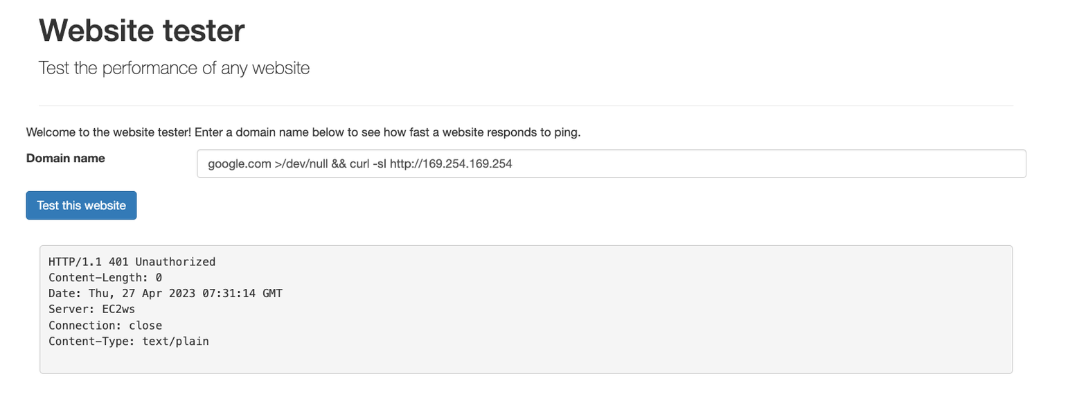 Let's go back to our application that is vulnerable to command injection. (Note that the same attack would also work with a simple local file read vulnerability.)