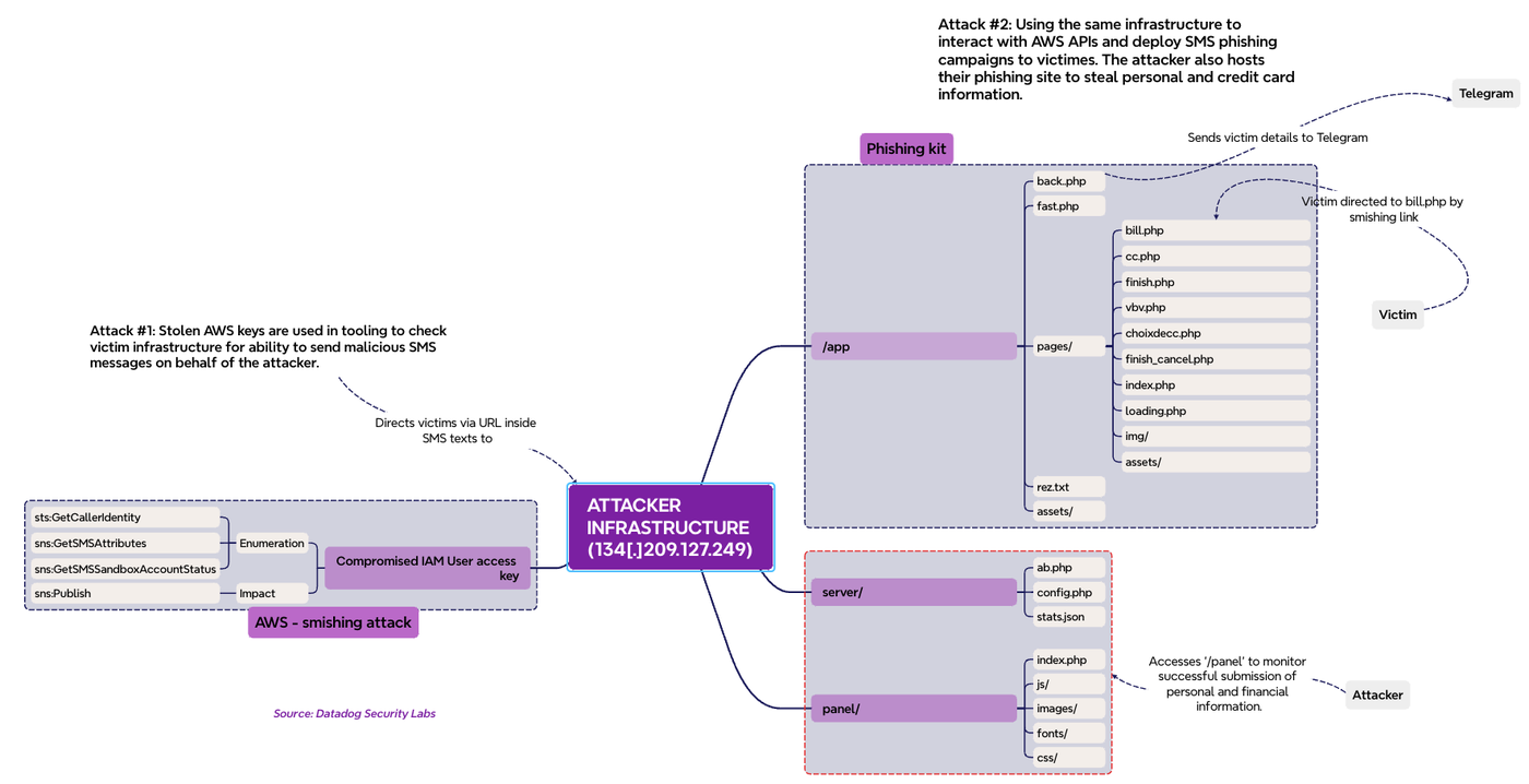 It appeared that the attacker was using the same infrastructure to host their phishing page and target AWS environments for the purpose of sending out phishing links via SMS.