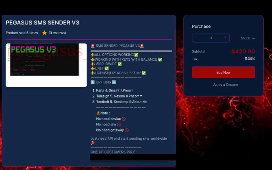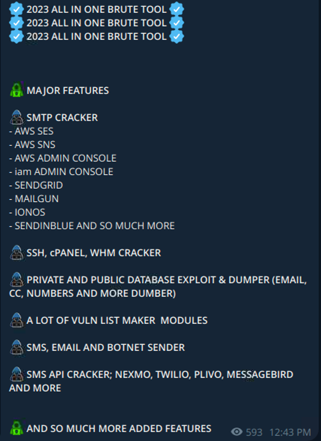 Several publicly available threat actor toolsets abuse services like Twilio and Amazon SNS, attackers will then advertise on platforms like Telegram for individuals or groups interested in SMS spam or smishing. This is also reinforced by our internal data with AWS SNS being one of the services that attackers target most frequently.