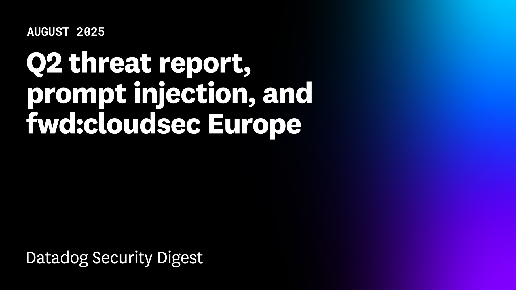 This edition covers Datadog's Q2 threat report, new cloud security research, AI security vulnerabilities, application security findings, and upcoming community events. We hope you enjoy catching up on the latest in cloud security!
