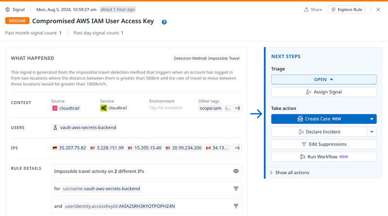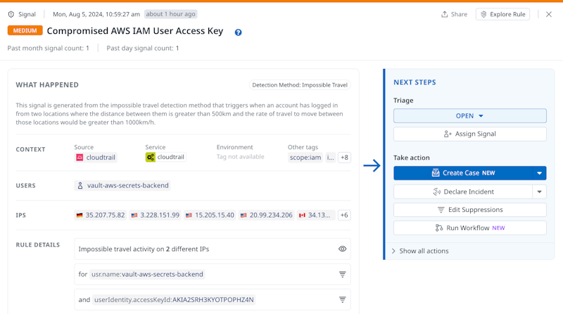 Investigating SIEM signals can be daunting when you have to switch back and forth between different data sources and views. We've redesigned the detailed Cloud SIEM signal view to do the hard work of simplification and make sure you have everything at hand while minimizing noise.